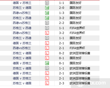 德国vs苏格兰历史战绩:
